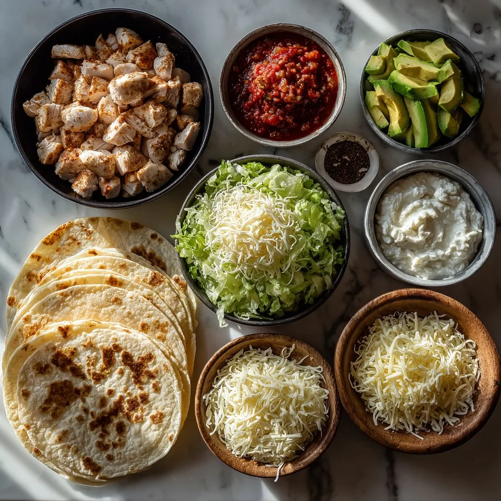 - Toppings such as shredded cheese, lettuce, sour cream, and avocado