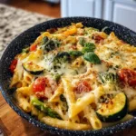 A vibrant dish of al dente pasta tossed with colorful spring vegetables and fresh herbs, perfect for a light weeknight dinner.